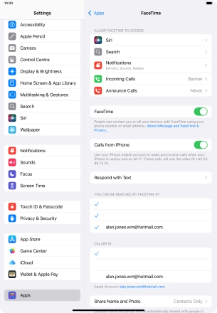 Press the required setting below "YOU CAN BE REACHED BY FACETIME AT".