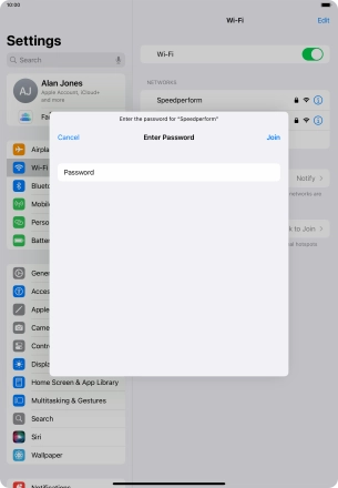 Press the required Wi-Fi network and key in the password for the Wi-Fi network.