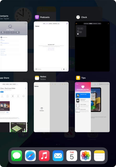Slide your finger slowly upwards starting from the bottom of the screen until the list of running applications is displayed.