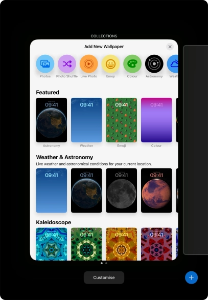 Press Customise and follow the instructions on the screen to customise the selected lock screen.