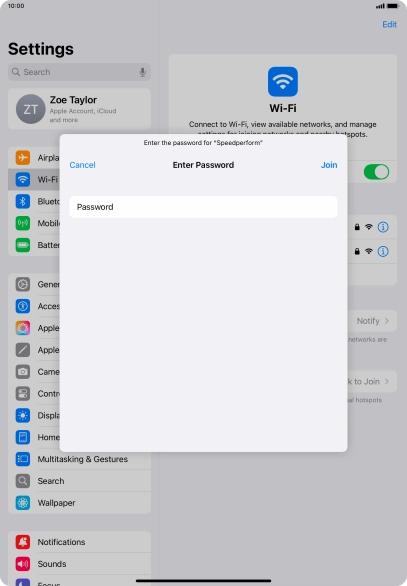 Press the required Wi-Fi network and key in the password for the Wi-Fi network.