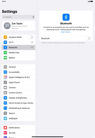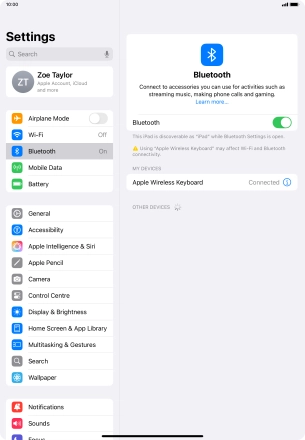 Press the required Bluetooth device and follow the instructions on the screen to pair the device with your tablet.