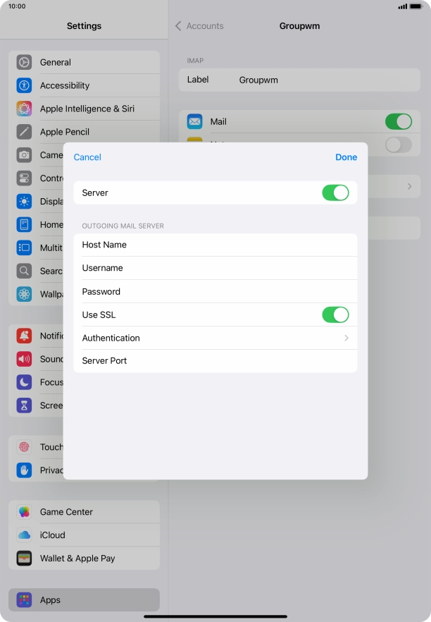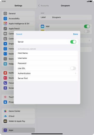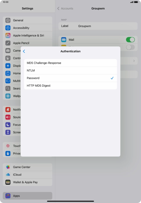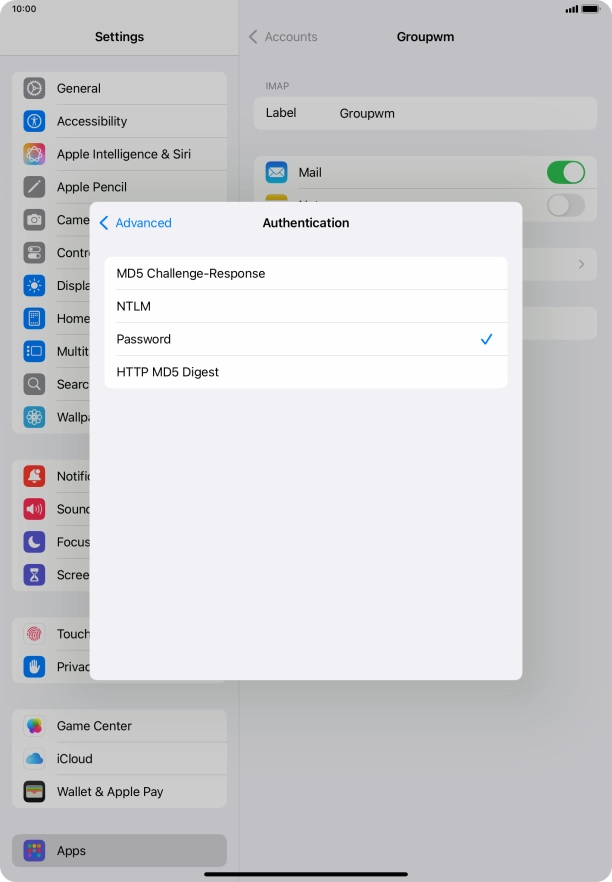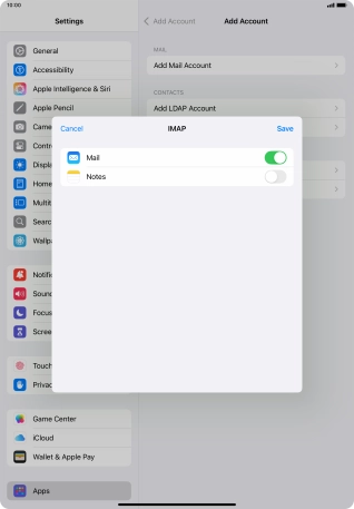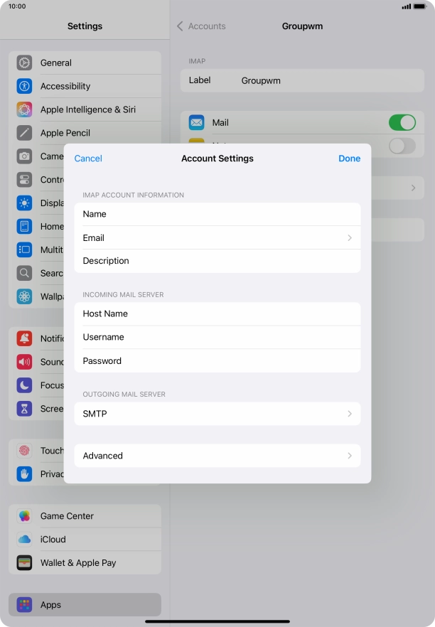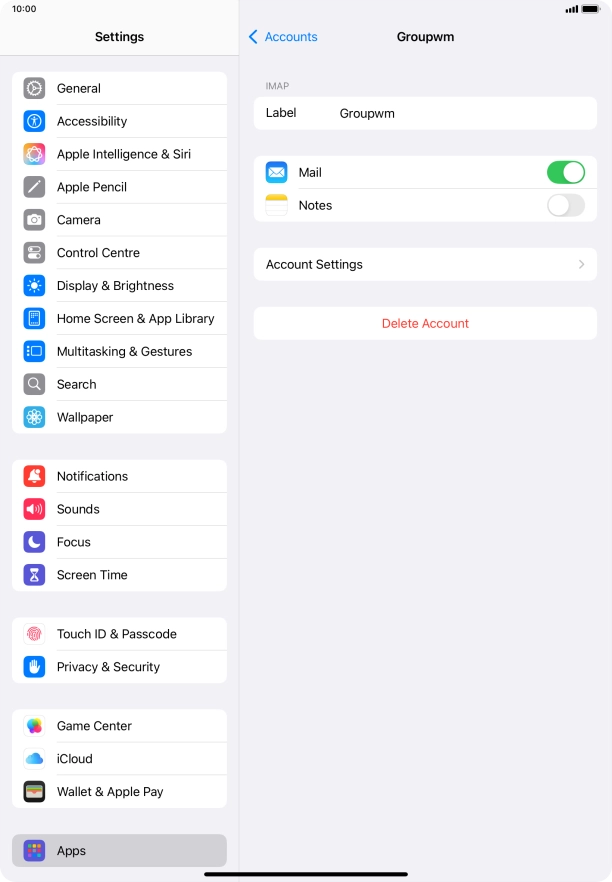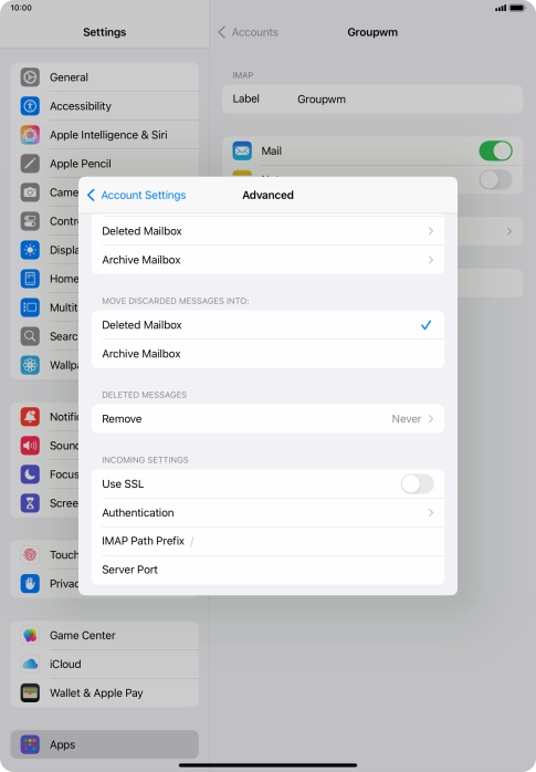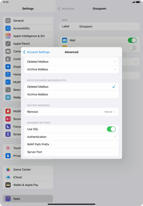 Press the required email account and follow the instructions on the screen to select settings for the specific account.