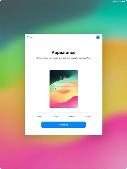 Select the required text and icon size on your tablet and press Continue.