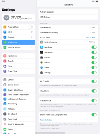 My Apple iPad Air 13 (2024) iPadOS 17 uses a large amount of mobile data