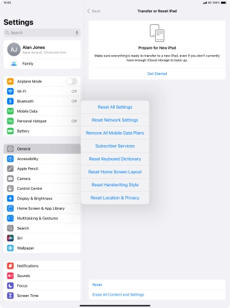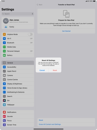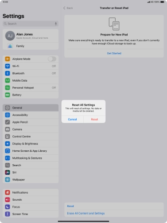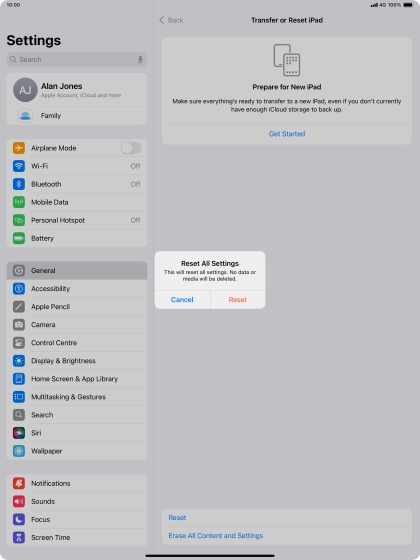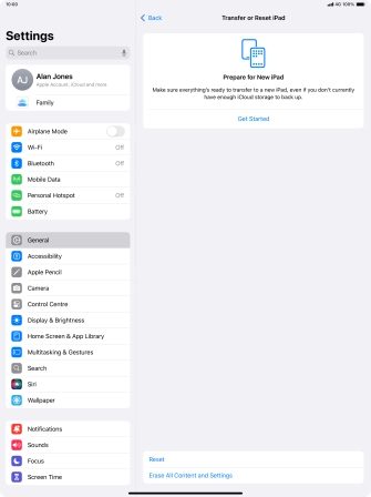 Press Transfer or Reset iPad.