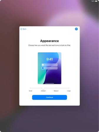 Select the required text and icon size on your tablet and press Continue.