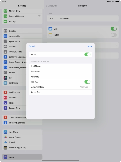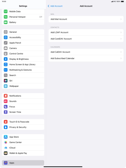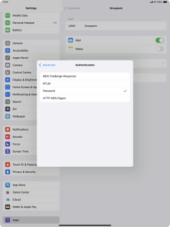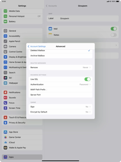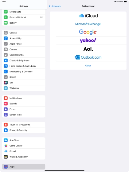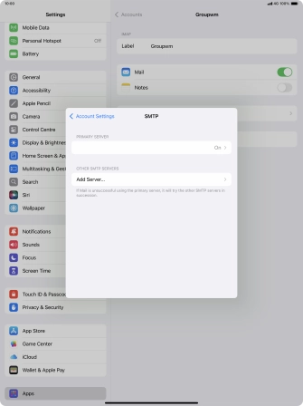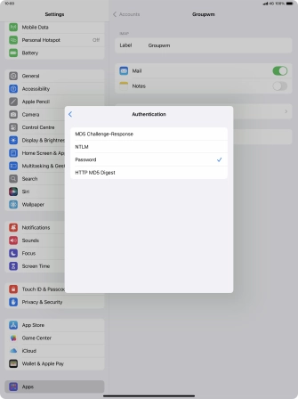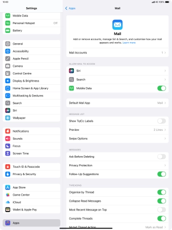 Press the required email account and follow the instructions on the screen to select settings for the specific account.