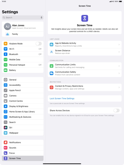 Press Screen Time and optionally select the required member of your family group.