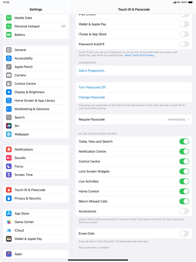 4 Turn off use of lock code