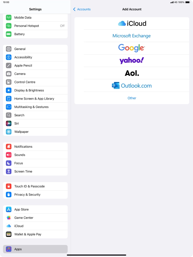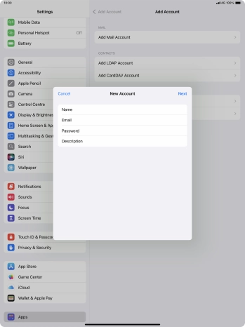 Press the required email account and follow the instructions on the screen to select settings for the specific account.