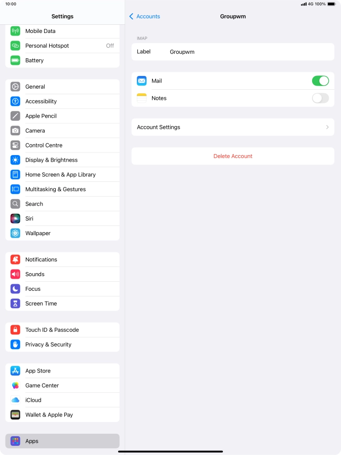 Press the name of the email account you've just set up.