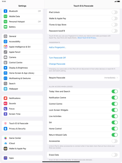4. 4. Turn off use of lock code