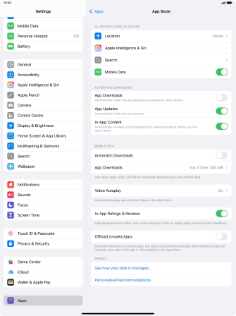 2. 2. Turn automatic synchronisation of apps and app content on or off