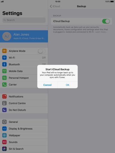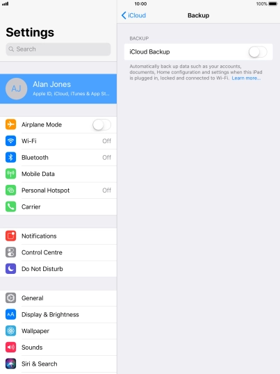 Press iCloud Backup.