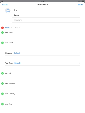 Press First name and key in the first name.