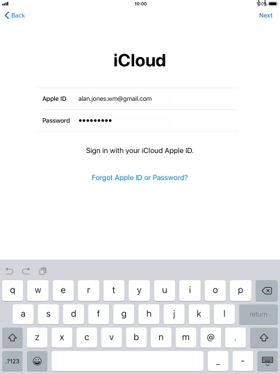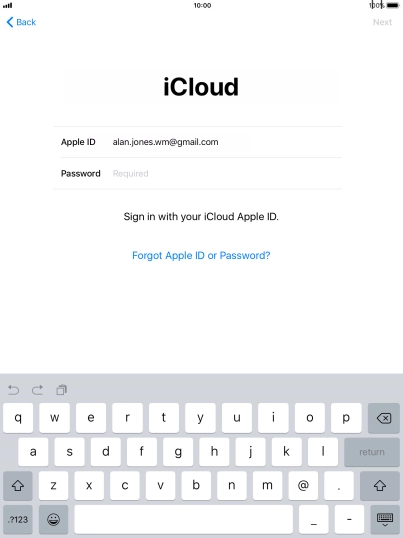 Press the field next to "Apple ID" and key in the username for your Apple ID.