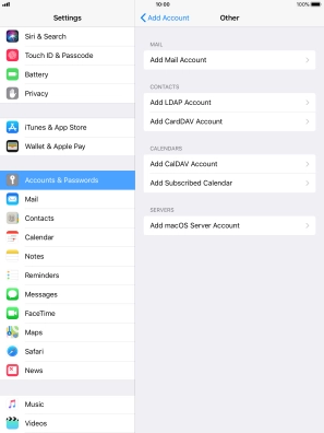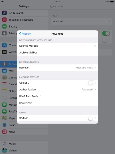 Press the required email account and follow the instructions on the screen to select settings for the specific account.