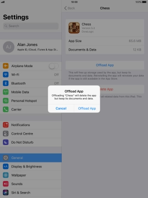 When you use this method, all app settings and data are saved in the tablet memory and are restored when you reinstall the app from App Store on your tablet.