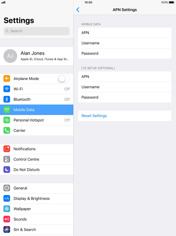 Press APN Settings.