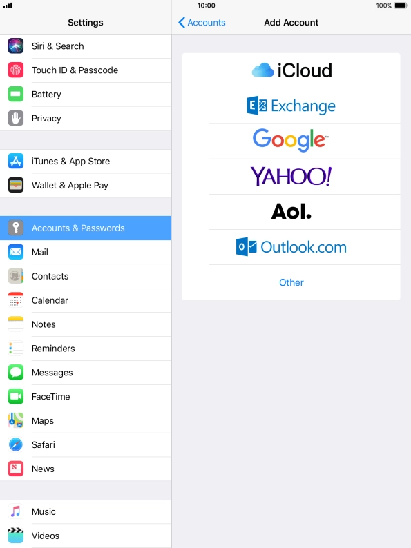 Press the required email account and follow the instructions on the screen to select settings for the specific account.