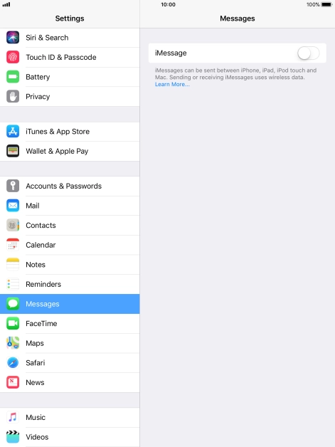 Press the indicator next to "iMessage" to turn on the function.