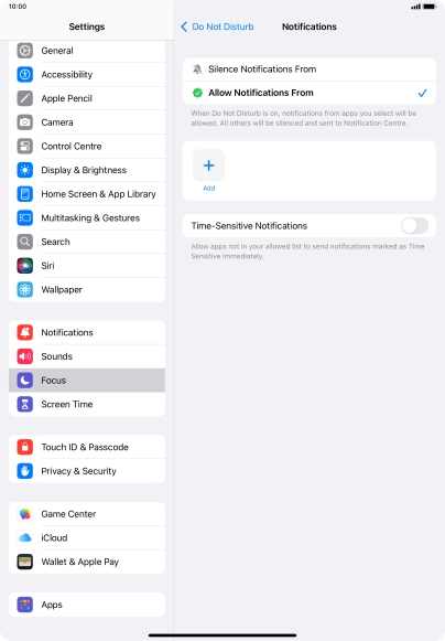 Press Apps and follow the instructions on the screen to select which apps you would like to receive notifications from when Do Not Disturb is turned on.