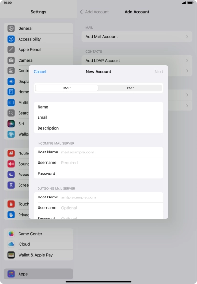 Press the required email account and follow the instructions on the screen to select settings for the specific account.