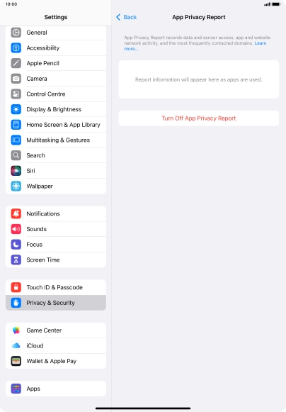Press Turn On App Privacy Report to turn on the function.