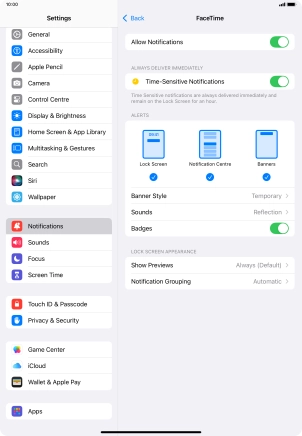 Press the indicator next to "Time-Sensitive Notifications" to turn the function on or off.