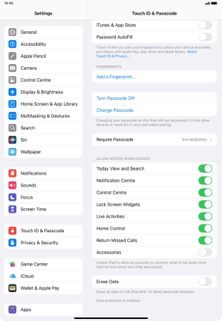 Press the indicator next to "Erase Data" to turn the function on or off.