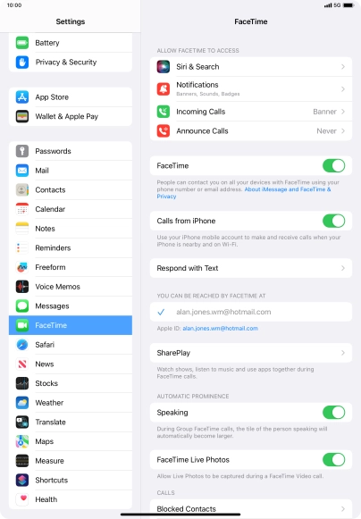 Press the required setting below "YOU CAN BE REACHED BY FACETIME AT".