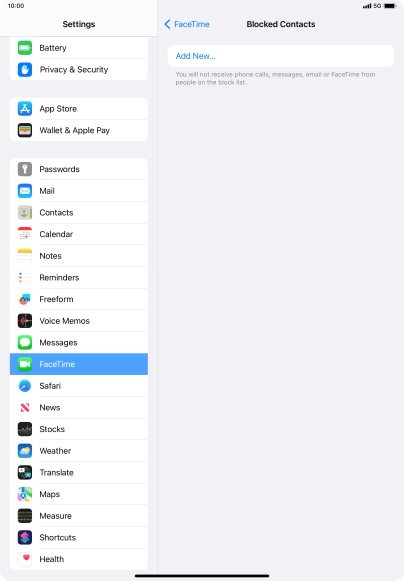 Press the indicator next to "FaceTime" to turn the function on or off.