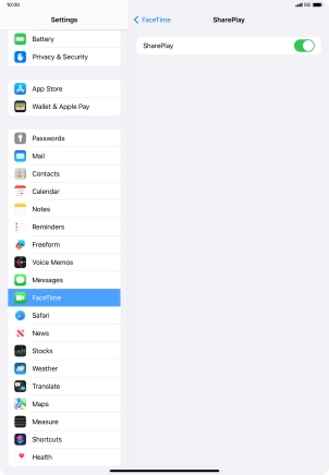 Press the indicator next to "SharePlay" to turn the function on or off.