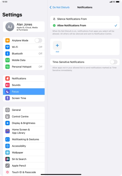 Press the indicator next to "Time-Sensitive Notifications" to turn display of timed notifications on or off when Do Not Disturb is turned on.