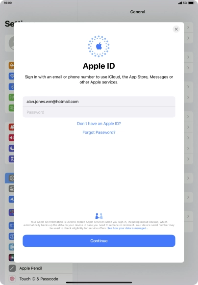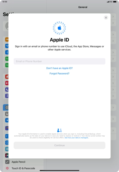 Activate Apple ID on your tablet