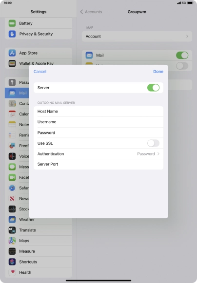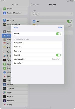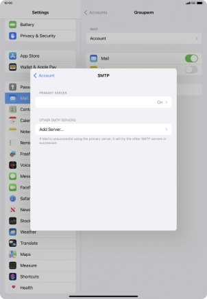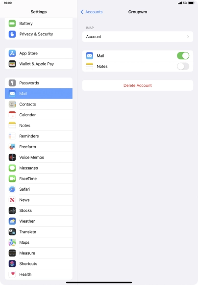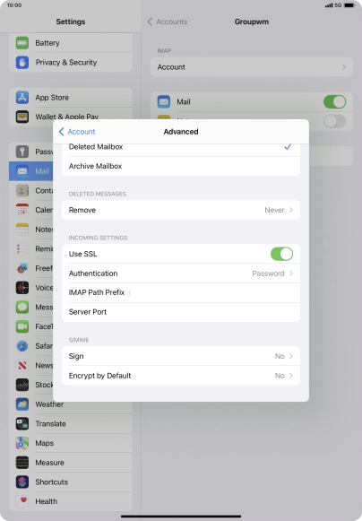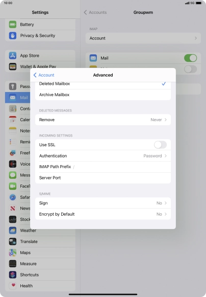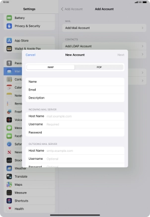 Press the required email account and follow the instructions on the screen to select settings for the specific account.