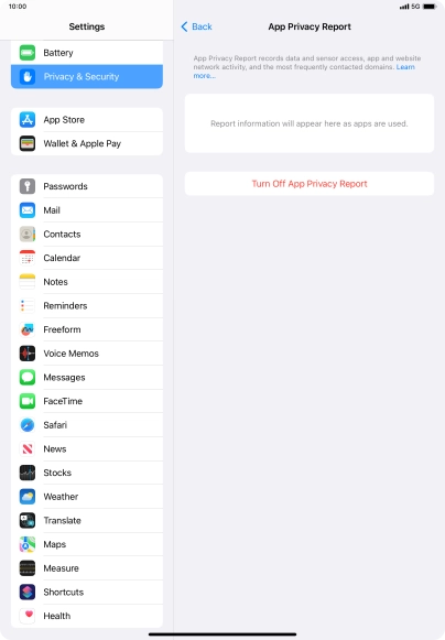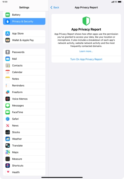 Press Turn On App Privacy Report to turn on the function.