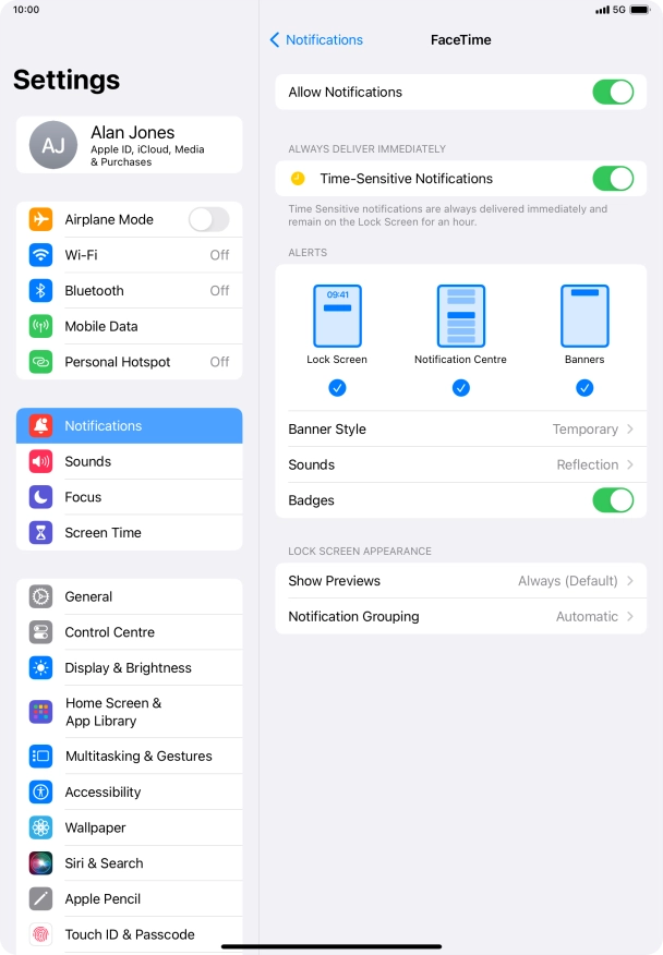 Press the indicator next to "Time-Sensitive Notifications" to turn the function on or off.