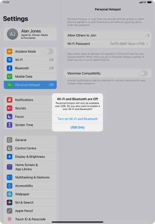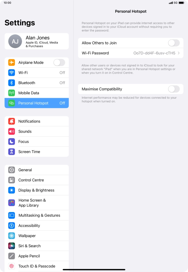I can't use my Apple iPad Air (2022) iPadOS 17 as a personal hotspot