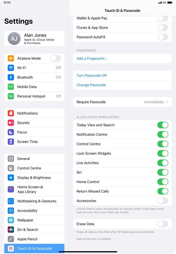 Press Touch ID & Passcode.