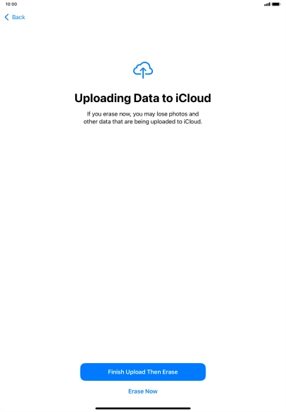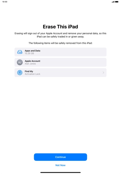 Key in the password for your Apple ID and press Turn Off. Wait a moment while the factory default settings are restored. Follow the instructions on the screen to set up your tablet and prepare it for use.