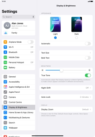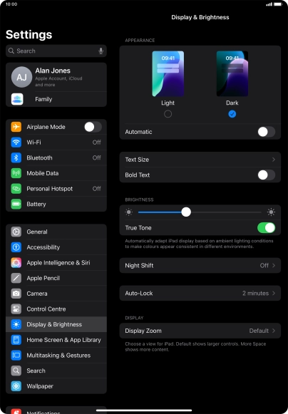 If you turn on the function, press Options and follow the instructions on the screen to select the required period of time for Dark Mode.