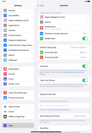 You can make a video call to another device which supports FaceTime. To select settings for FaceTime, you need to activate your Apple ID on your tablet.