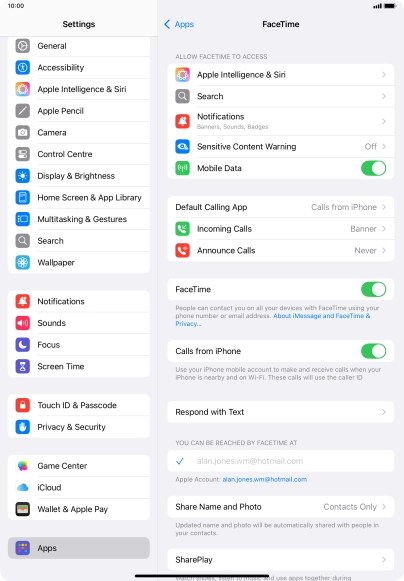 Press the required setting below "YOU CAN BE REACHED BY FACETIME AT".