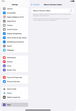 Press the indicator next to "FaceTime" to turn the function on or off.