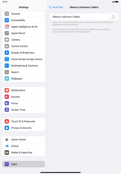 Press the indicator next to "Silence Unknown Callers" to turn the function on or off.