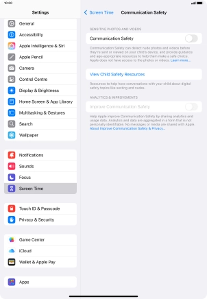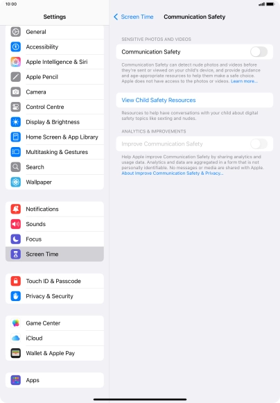 Communication Safety detects sensitive content in pictures and videos sent from and received on the selected Apple devices and offers guidance and warnings about this. This feature can be used when setting up Screen Time for your family group.