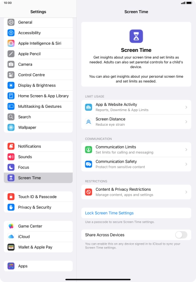 Press Screen Time and optionally select the required member of your family group.