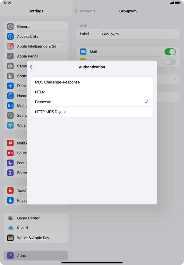 Press Password and key in the password for your email account.